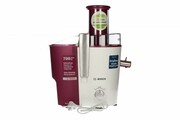 Dodatkowe opcje:blokada kapania, blokada przy nieprawidłowym złożeniu;Gwarancja:24 miesiące;Barwa:biało-fioletowy;Ilość poziomów obrotów:2;Moc:700 W;Możliwość czyszczenia elementów w zmywarce:tak;Zbiornik na sok:tak;Pojemność zbiornika na miąższ:2 l;Regulowanie obrotów:mechaniczna-skokowa ;Seria wariantowanie:Bosch MES2;Szerokość otworu wsadowego:73 mm;Wymieniany pojemnik na miąższ:tak;Wyposażenie:instrukcja obsługi w języku polskim, pojemnik na miąższ, pojemnik na sok, popychacz, szczoteczka ;Zasilanie:sieciowe