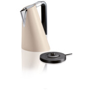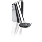 Czajnik elektryczny Vera Easy Czajnik elektryczny Vera Easy od marki Bugatti to nowoczesne urządzenie, które łączy stylowy wygląd z obsługą. Istotny charakter Vera Easy znajduje również odzwierciedlenie w jego funkcjach: za jednym dotknięciem czajnik uruchamia się i zatrzymuje, gdy woda się zagotuje. Wykonany został ze stali szlachetnej, najwyższej jakości, co nadaje mu niepowtarzalnego uroku oraz zapewnia trwałość, wytrzymałość, solidność jak też niezwykłą estetykę. Walory użytkowe produktu podnosi szeroki uchwyt z widocznym poziomem wody w zakresie od 750 ml do 1700 ml Baza została zaprojektowana w systemie 360º, czyli istnieje możliwość ustawiania czajnika w dowolnej pozycji , co jest niewątpliwie bardzo komfortowe dla użytkownika Czajnik wyposażony jest w system, który automatycznie wyłącza urządzenie, krótko po przegotowaniu wody Jeśli potrzebna jest ciepła woda, proces ogrzewania można zatrzymać w każdej chwili poprzez wciśnięcie przycisku on / off Konstrukcja stożkowa czajnika została tak zaprojektowana, aby zmniejszyć straty ciepła, przez co urządzenia pobiera mniej energii Czajnik posiada termiczny czujnik bezpieczeństwa, który chroni przed przegrzaniem. Termostat chroni czajnik przed przegrzaniem: jeśli urządzenie zostanie przypadkowo włączone puste, system ten automatycznie wyłącza urządzenie Całe urządzenie składa się z dwóch części : czajnika i bazy