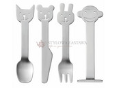 Sztućce posiadają zaokrąglone końcówki i krawędzie oraz wykonane są ze stali nierdzewnej odpornej na rdzewienie. Sztućce można myć w zmywarkach. Przeznaczone są dla dzieci pomiędzy 1 - 4 rokiem życia. Zabierz swoje dziecko w bajkową krainę, w której małe zwierzątka będą mu towarzyszyć podczas posiłku. Sztućce umieszczone są w zabawnym opakowaniu.