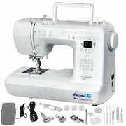 Automatyczne nawlekanie igły:tak;Chwytacz nitki:rotacyjny (obrotowy);Funkcje dodatkowe:8 rodzajów obrzucania dziurek, auto nawijacz szpuleczki, regulacja naprężenia nici;Funkcje szycia:cerowanie, marszczenie tkanin, obrębianie tkaniny, obszywanie dziurki guzika, pikowanie, przyszywanie aplikacji, szycie materiałów elastycznych, wszywanie zamka błyskawicznego, wykańczanie brzegów, zszywanie tkaniny;Funkcje szycia:marszczenie tkanin, obrębianie tkaniny, obszywanie dziurki guzika, przyszywanie aplikacji;Gwarancja:24 miesiące;Liczba ściegów:99;Moc:0;Możliwość zastosowania podwójnej igły:tak;Pozycjonowanie igły:tak;Regulacja długości ściegu:0 - 4 mm;Regulacja szerokości ściegu:0 - 7 mm;Rodzaje ściegów:cerujący, elastyczny, gałązkowy, kryty, owerlokowy, piórkowy, plaster miodu, półksiężycowy, prosty, satynowy, ukośny, zygzak;Szycie wstecz:tak;Waga:7 kg;Wyposażenie:instrukcja obsługi w języku polskim, karta gwarancyjna, komplet igieł, nakładka na szpulki, oliwiarka, stopka do obrzucania dziurek, stopka do ściegu krytego, stopka do ściegu owerlokowego, stopka do ściegu satynowego, szpulka, wkrętaki;Wyświetlacz:tak