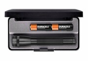 Latarka Maglite Mini AA Czarna M2A01LPoręczna i wodoodporna latarka żarówkowa, zasilana 2 bateriami AA o niewielkich rozmiarach. Całość umieszczona w czarnym etui.W zestawie znajduje się zapasowa żarówka oraz baterie.Parametry techniczne zgodne ze standardem ANSI FL1:- światłość ok. 2300 kandeli [cd],- zasięg w optymalnych warunkach ok. 100m,- strumień światła 14 lumenów [lm],- odporność na ekstremalne warunki atmosferyczne,- odporność na upadek z wysokości 1m,- trwałość kompletu baterii ok. 5h.Parametry techniczne:materiał - utwardzone aluminium,zabezpieczenie antykorozyjne - anodowana powłoka na zewnątrz i wewnątrz latarki,odporność na wstrząsy, chwilowe zanurzenie,wszystkie łączenia elementów korpusu zabezpieczone uszczelkami wykonanymi z wysokogatunkowego materiału,długość - 15cm,waga z bateriami - ok. 107g,zasilanie - dwie baterie AA (R6), 2x1,5V....
