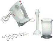 Miksery Bosch MFQ 3540 to funkcjonalność na wyciągnięcie ręki. Lekki i zgrabny, poręczny, zadziwiająco sprytny. Nowoczesny w formie i funkcjach poradzi sobie z każdym zadaniem. Mikser to duża pomoc w kuchni. Pomoże utrzeć ciasto, krem, przyrządzić majonez, ubić pianę czy śmietanę. Jednym słowem - będzie towarzyszył w przyrządzaniu wielu pyszności. Mikser wyposażony jest w ubijaki, mieszadła i końcówkę miksującą do rozdrabniania, przecierania, mieszania i miksowania. Ponadto nie zajmuje wiele miejsca, a jego montaż i demontaż zabierają dosłownie chwilę. Jest więc idealny do małej kuchni, w której nie ma miejsca dla wielofunkcyjnego robota.