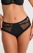 Pełne wyrafinowanego smaku figii o prostym fasonie, na bokach wstawki z pięknego haftu. Tył oraz przód, wykonany z lekkiej dzianiny, tłoczonej w połyskujące prążki. Zalotna wstążeczka nadaje im wdzięku.