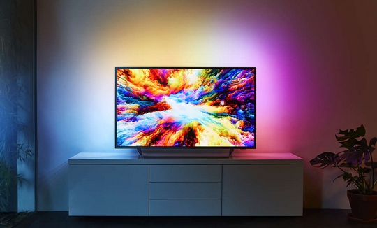 Jeśli tego jeszcze nie wiecie, to firma Philips zaczęła swoją historię od żarówek. U schyłku XIX wieku w holenderskim mieście Eindhoven powstała pierwsza fabryka żarówek Philipsa. Do dzisiaj, sprzęt oświetleniowy stanowi ważną gałąź produkcji w całym portfolio Philipsa. Być może to jest jednym z powodów, dla których stworzony serię telewizorów z umieszczonym oświetleniem na tylnej obudowie, aby podświetlać ścianę za telewizorem. O ile w pierwszych modelach Ambilight tych diod było niewiele, były w jednym kolorze i statyczne, to najnowsze telewizory z Ambilight mają z tyłu obudowy wręcz miniaturowe projektory i podświetlenie tła jest dynamicznie powiązane z tym, co jest wyświetlane na telewizorze.