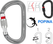 Karabinek zakręcany. Dzięki swemu asymetrycznemu kształtowi posiada wyjątkową wytrzymałość. Am D jest karabinkiem wszechstronnym.