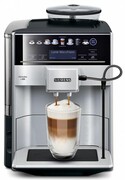 Sterowanie: Elektroniczne Okres gwarancji: 24 miesiące Kolor: Srebrny Wymiary (WxGxS) [cm]: 38,5 x 47,9 x 28 cm Waga [kg]: 9,5 kg Załączone wyposażenie: 1 x łyżeczka do odmierzania, 1 x wężyk łączący, 1 x paski testowe do bad.tward.wody, 1 x rurka do mleka Pojemność zbiornika na kawę [g]: 300 g Długość przewodu [m]: 1,5 m Linia: EQ.6 Wyświetlacz: Tak Maksymalna wysokość filiżanki [cm]: 15 cm Cenówki - Spienianie mleka: Automatyczne Wysokość [mm]: od 351 do 400 mm Szerokość [mm]: od 251 do 300 mm Głębokość [mm]: od 401 do 500 mm Retro design: Nie Cechy fizyczne: ["Wyjmowana tacka okapowa","Wyjmowany pojemnik na wod\u0119","Wyjmowana podstawka na fili\u017canki ","Schowek na przew\u00f3d","Regulacja wysoko\u015bci dystrybutora kawy ","Wska\u017anik w\u0142\u0105czenia urz\u0105dzenia"] Ekspres do kawy do biura: Tak Rodzaj: Automatyczny Wbudowany młynek: Tak Inne: Senso Flow System, która dba o odpowiednią temperaturę parzonej kawy aromaPressure System: idealne ciśnienie dla wydobycia optymalnego aromatu Wyświetlacz LCD 3 ustawienia regulacji temperatury System spieniania mleka: Dysza automatycznie spieniająca Regulacja mocy kawy: 3 stopniowa Moc [W]: 1500 Ciśnienie [bar]: 15 bar Pojemność [l]: 1.7 Dostępne kawy: Espresso, Espresso Macchiato, kawy, cappuccino, latte macchiato, biała kawa Kawa: Ziarnista / mielona Rodzaj młynka: Ceramiczny Dostepne napoje: ["[\"Cappuccino","Latte Macchiato","Espresso","Caffe Latte","Americano","Gor\u0105ca woda","Cappuccino","Latte Macchiato","Espresso"] Rodzaj kawy: ["Ziarnista","Mielona"] Spienianie mleka: Automatyczne Moc/Ciśnienie: 1500 W/15 bar Zamienniki modelu: SIEMENS TE651209RW/TE651319RW, SIEMENS TE657313RW/ TE657319RW, SIEMENS TE655203RW EQ.6 PLUS S500 Ekspres do kawy z pojemnikiem na mleko: Nie Podgrzewanie filiżanek: Nie Inne: autoMilk Clea zeroEnergy Auto-off: automatyczne wyłączanie po określonym czasie z całkowitym odcięciem poboru energii (0 W) Funkcja gorącej wody: Tak Funkcje dodatkowe: ["[\"Automatyczne czyszczenie i odkamienianie","Przygotowanie dw\u00f3ch kaw mlecznych jednocze\u015bnie","Automatyczne czyszczenie i odkamienianie","Indywidulanie regulowana wielko\u015b\u0107 fili\u017canki (pojemno\u015b\u0107)","Jednoczesne nape\u0142nianie 2 fili\u017canek","Wska\u017anik poziomu wody"] Dostępne ustawienia: ["Ustawienie wielko\u015bci rozdrobnienia ziaren","Regulacja ilo\u015bci kawy "] Rodzaj wyświetlacza: LCD Pojemnik na mleko: Nie Wskaźnik poziomu wody: Tak Regulacja ilości kawy: Tak Dysza pary: Nie Automatyczny system odkamieniania: Tak Schowek na przewód: Tak Wyjmowana podstawka na filiżanki: Tak Jednoczesne napełnianie 2 filiżanek: Tak Możliwość przygotowywania gorących i zimnych napojów: Nie Wyjmowana tacka okapowa: Tak Wyjmowany pojemnik na wodę: Tak Napięcie: 220-240 V Łyżka z funkcją ubijania: Nie Wstępne parzenie: Nie Wyposażenie opcjonalne: Filtr do wody, tabletki czyszczace,tabletki odkamieniajace, pojemnik na mleko Ilość temperatur: 3 System zaparzania: Senso