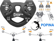 TANDEM Podwójny bloczek transportowy o okładkach nieruchomych Kolor czarny Podwójny bloczek z rolkami aluminiowymi na stalowych łożyskach kulkowych - zapobiega skręcaniu się na linie. Stosowany do tyrolek, ratownictwa i prac na wysokości. Możliwość stosowania na linach tekstylnych i stalowych. Maksymalna wytrzymałość: 25 kN Maksymalna średnica liny tekstylnej: 13 mm, stalowej 12mm Materiał: stal nierdzewna Waga: 270 g zgodny z CE 0333, PN-EN 12278