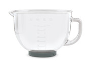 Szklana dzieża do miksera SMEG Stylowa dzieża do mikserów planetarnych włoskiej marki SMEG doskonale wpasuje się w każdy wystrój kuchni. Została wykonana ze szkła które nada mikserowi przejrzystości której mogło niektórym brakować w dzieżach ze stali nierdzewnej ze standardowego wyposażenia mikserów. Misa ma pojemność 4.8L, posiada poręczny uchwyt oraz czytelną i praktyczną miarkę, dzięki której nie trzeba będzie korzystać z dodatkowych naczyń aby przeliczyć ilość ciasta. Dzieża jest kompatybilna z mikserami planetarnymi smeg SMF02 oraz SMF03 i wchodzi w skład wyposażenia podstawowego miksera SMF13.