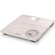 Waga łazienkowa Bamboo marki Soehnle doda odrobinę stylu Twojej łazience. Waga wyposażona jest w platformę do ważenia z prawdziwego bambusa, która jest przyjemnie ciepła dla stóp i higieniczna, gdyż łatwo ją wyczyścić. Posiada ona eleganckie białe wykończenie z morskim nadrukiem. Duży ekran LCD jest podświetlany na biało i ma duże, czytelne cyfry, widoczne nawet w słabym świetle. Waga posiada udźwig do 180 kg, mierzone w skali z przyrostem co 100 g. Automatyczna, energooszczędna funkcja wyłączania jest jeszcze jedną dogodną cechą. W zestawie znajdują się trzy baterie AAA 1,5 V